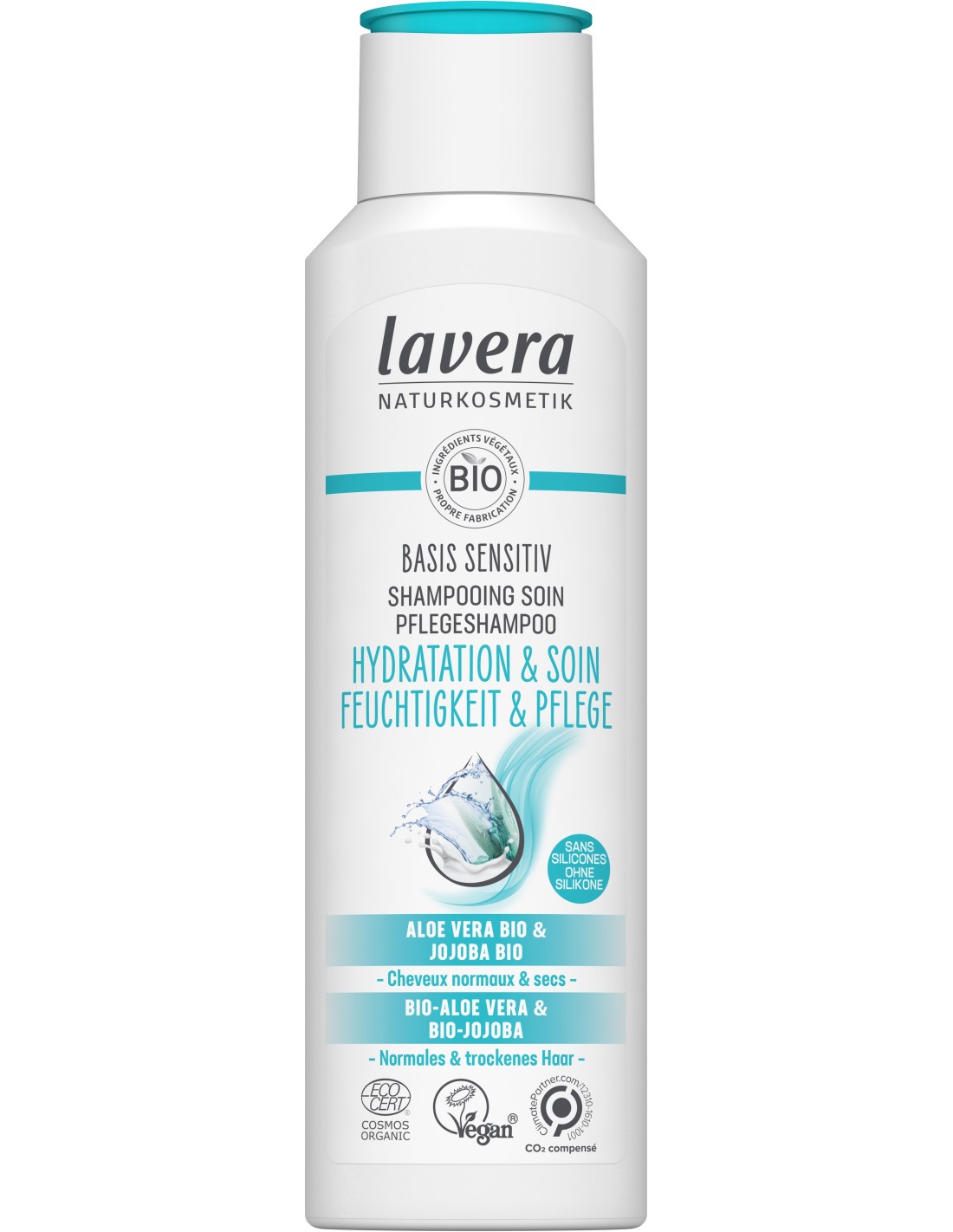 Découvrez la sensation d’un soin capillaire naturel et efficace avec le Shampooing Soin Hydratation Lavera Basis Sensitiv.