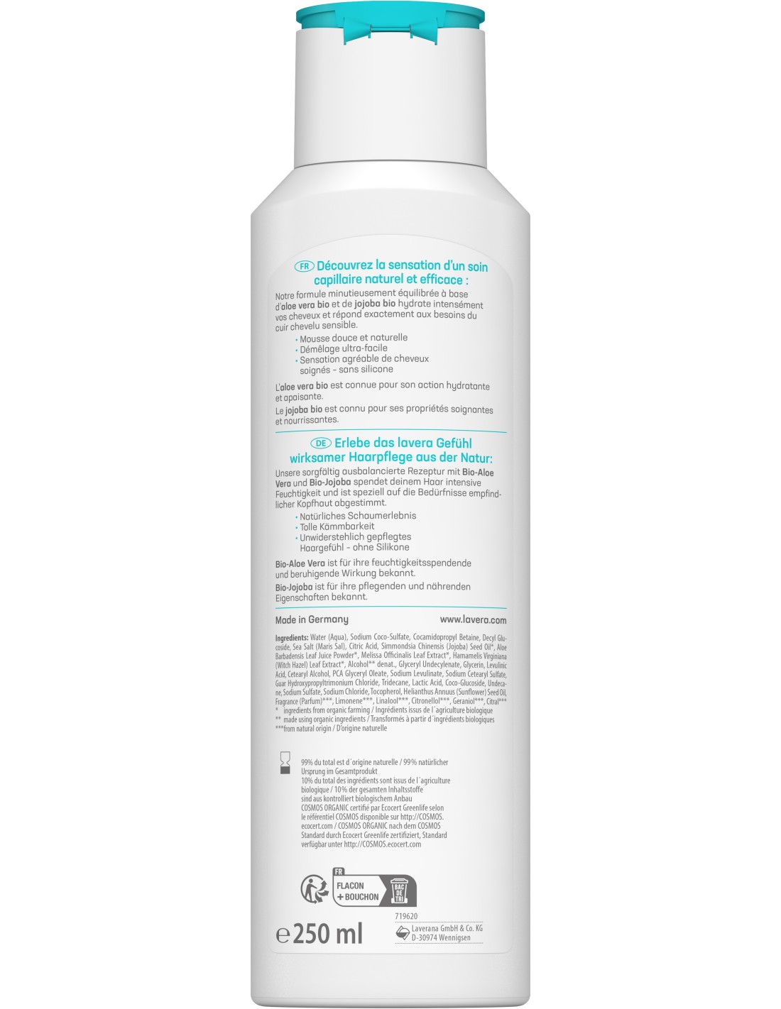 Pour un résultat optimal, complétez avec l’Après-shampooing Basis Sensitiv Hydratation & Soin de Lavera.