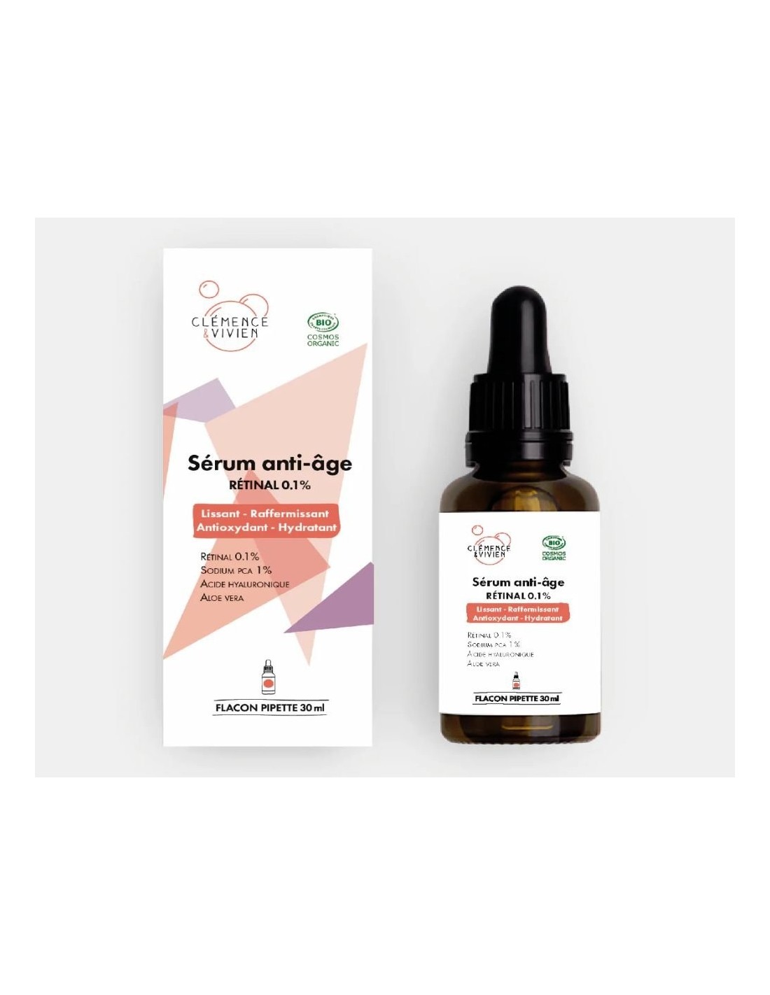 Complexe d’actifs anti-âge dont rétinal (dérivé de vitamine A), huiles végétales nourrissantes, antioxydants naturels et ingrédients biologiques hydratants.