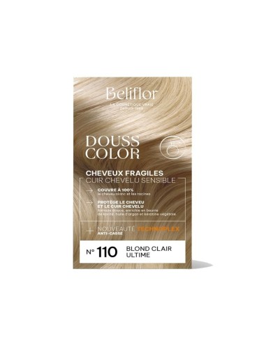 La coloration DoussColor 110 Blond Clair Ultime est une coloration permanente délicate, conçue pour les personnes ayant un cuir chevelu sensible ou des cheveux fragiles. Elle offre une couleur blonde lumineuse, profonde et durable tout en respectant la fibre capillaire et la peau.