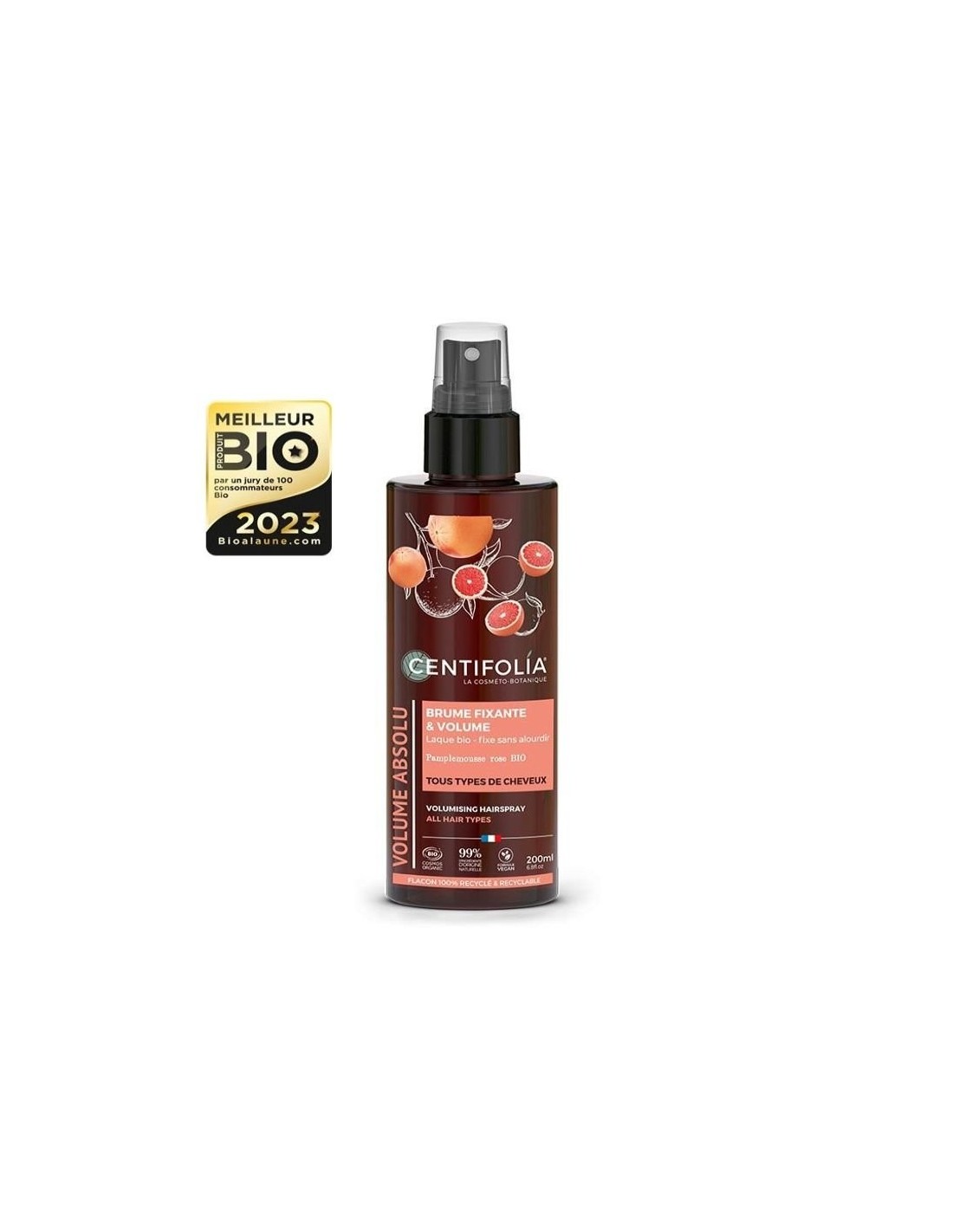 Cette brume capillaire fait partie de la gamme Volume Absolu Centifolia, pensée pour renforcer le volume et maintenir la coiffure tout en respectant la fibre capillaire. Elle est adaptée à tous types de cheveux, qu’ils soient fins, plats, bouclés ou colorés. La formule s’appuie sur des ingrédients d’origine naturelle, dont un extrait de pamplemousse rose bio qui apporte légèreté et fraîcheur à la chevelure. L’agent texturisant et fixant 100 % vegan forme un film protecteur invisible, résistant à l’eau et à la chaleur, pour fixer la coiffure sans effet carton.