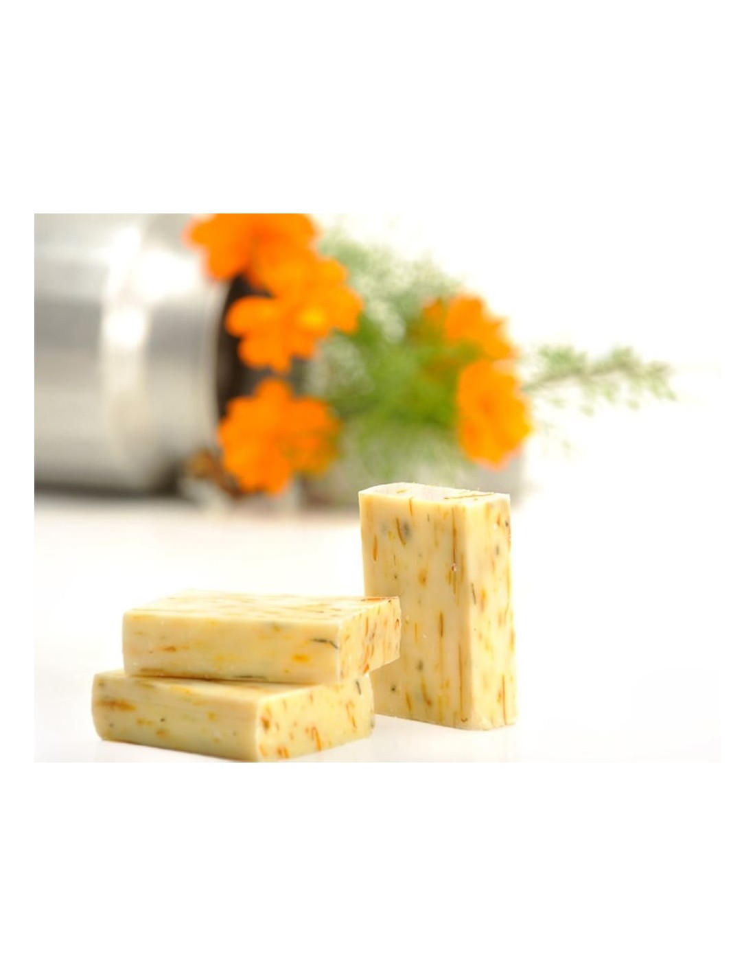 Savon surgras à base de lait frais de chèvre alpine, extrait de calendula officinalis.