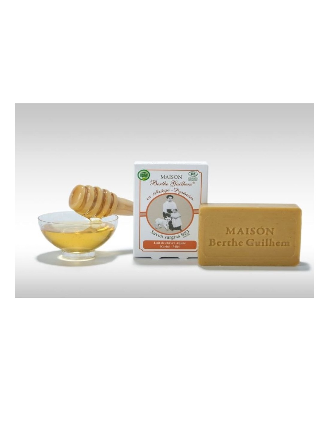Savon surgras à base de lait de chèvre alpine, beurre de karité et miel.