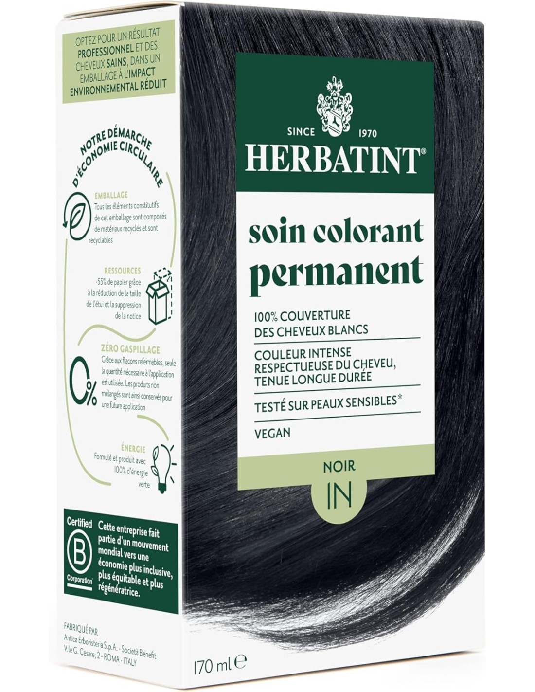 La coloration permanente Herbatint 1N Noir est conçue sous forme de gel qui facilite l’application et permet une répartition homogène sur l’ensemble de la chevelure, sans couler.