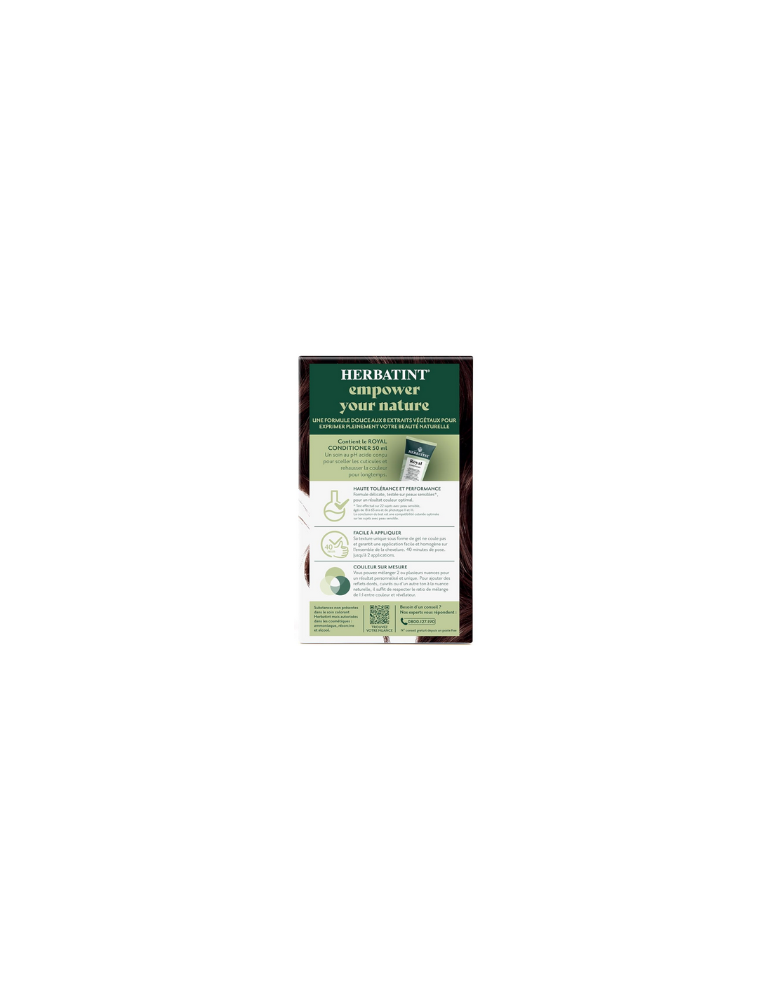 Formulée sans ammoniaque et testée dermatologiquement, elle offre une haute tolérance même pour les cuirs chevelus sensibles. Enrichie en huit extraits végétaux biologiques, elle contribue à protéger et nourrir la fibre capillaire pendant la coloration.