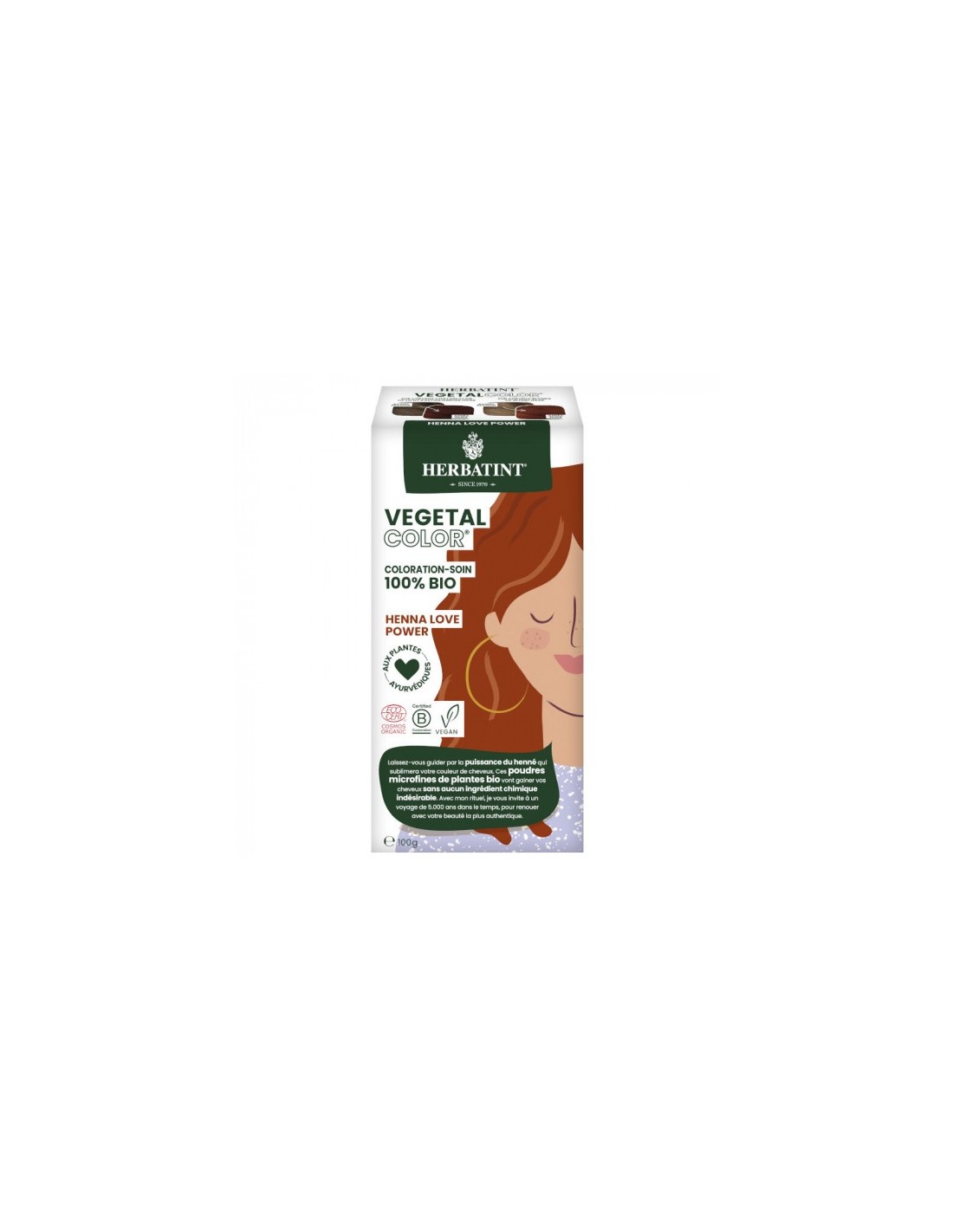 La coloration Henna Love est composée de plantes ayurvédiques sélectionnées pour leurs propriétés colorantes et fortifiantes.