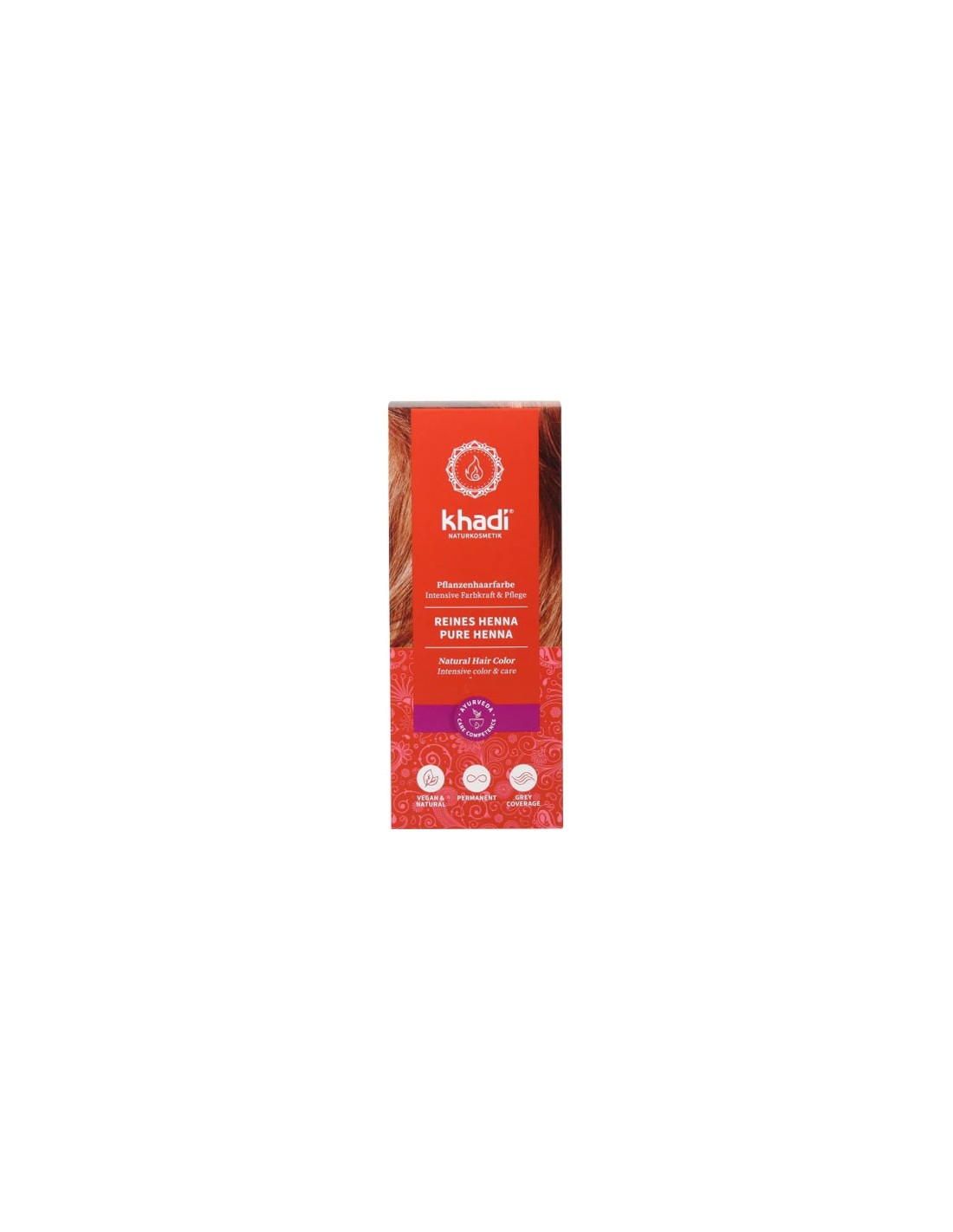 Le henné pur de chez Khadi donnera une teinte rougêatre lumineuse à vos cheveux, une couleur acajou aux cheveux foncés.