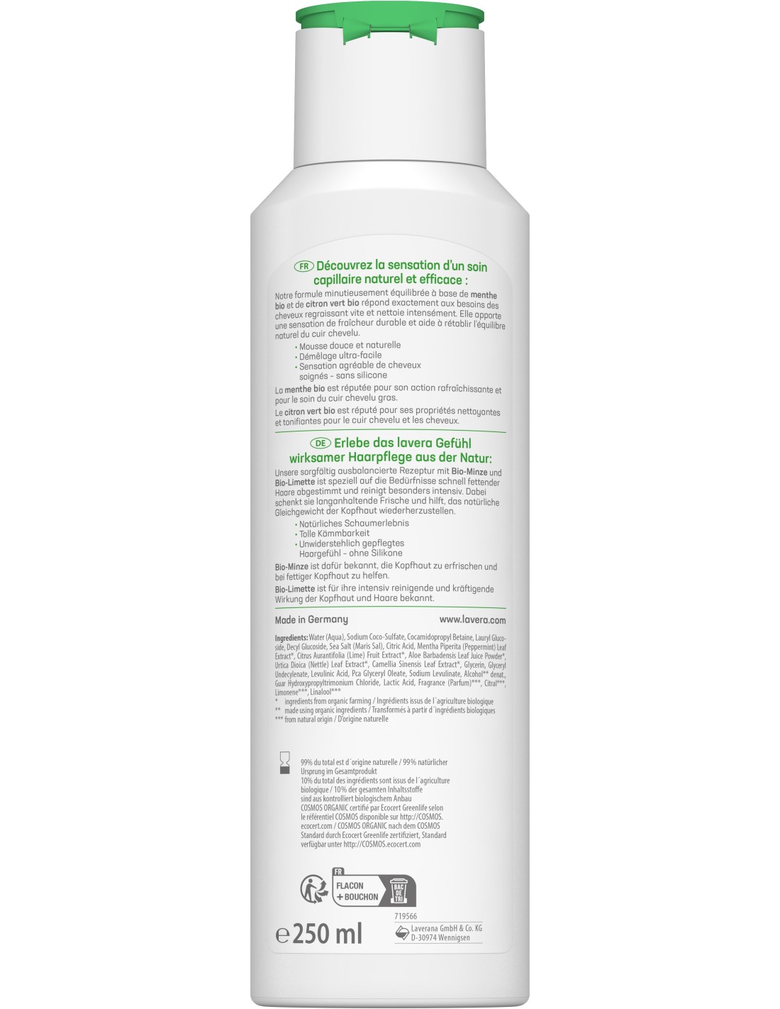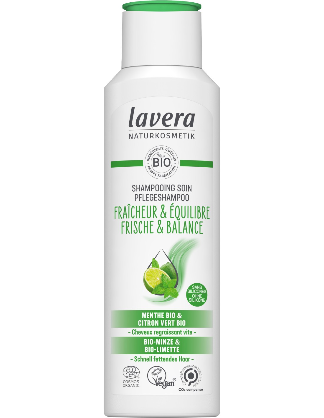 Le Shampooing Fraîcheur & Equilibre de lavera a été spécialement conçu pour nettoyer vos cheveux quotidiennement sans les dessécher. La formule végane à base de mélisse citronnelle bio et de menthe bio offre en toute naturalité une agréable sensation de fraîcheur des racines aux pointes, de manière tout à fait naturelle.